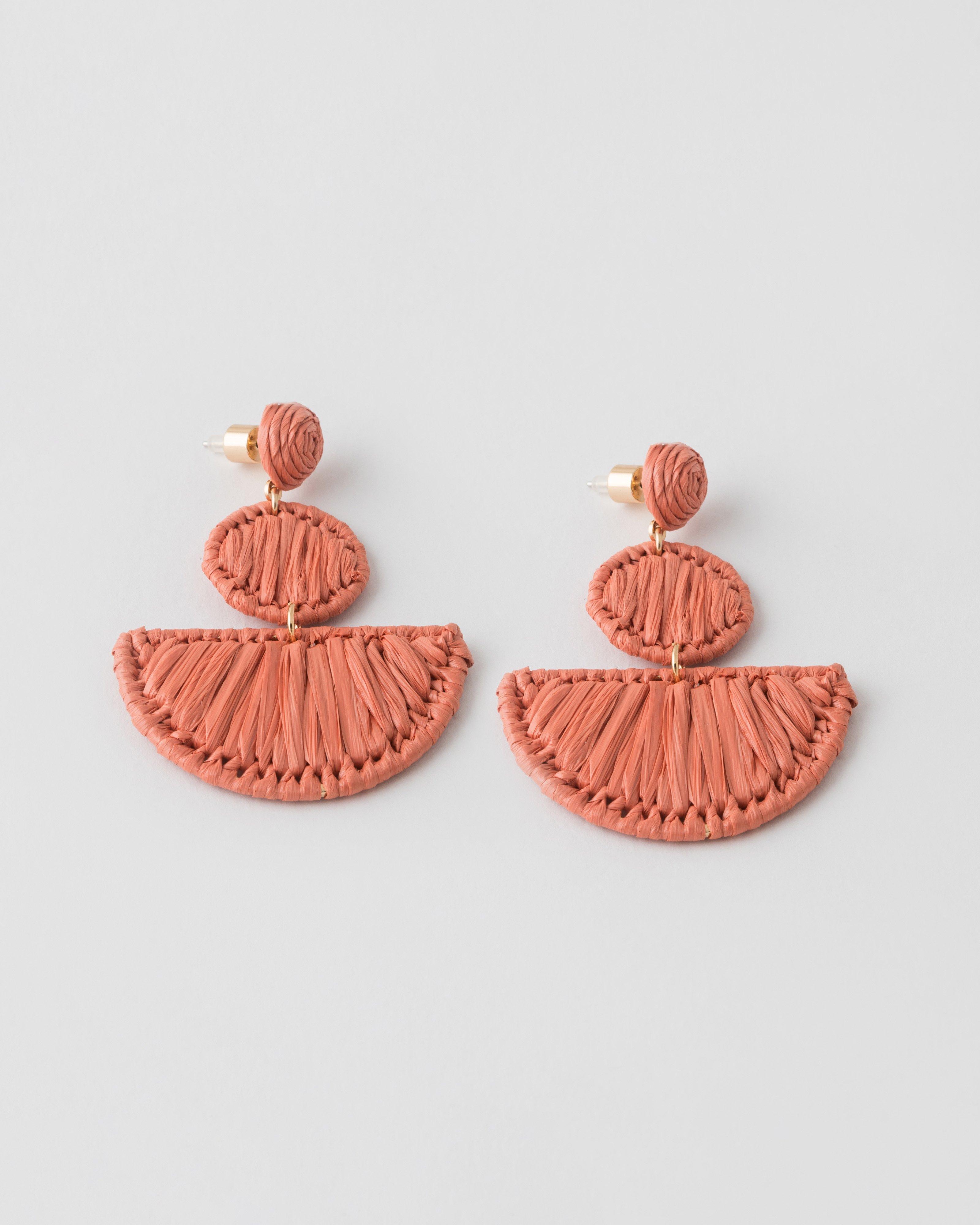 Raffia Halfmoon & Circular Drop Earrings