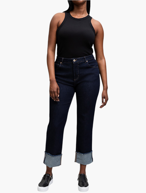 Woolworths Indigo Mid Rise Turn up Boyfriend Jeans