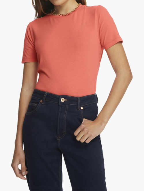 Woolworths Coral Crew Neck Rolled Up Sleeves Tee