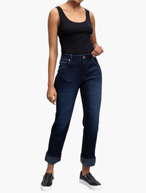 Woolworths Dark Blue Mid Rise Turn-up Boyfriend Jeans
