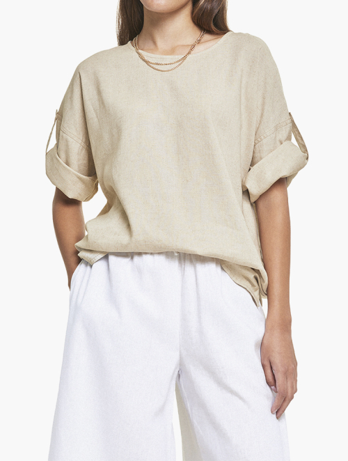 Woolworths Natural Tab Sleeve Linen Blend Tee