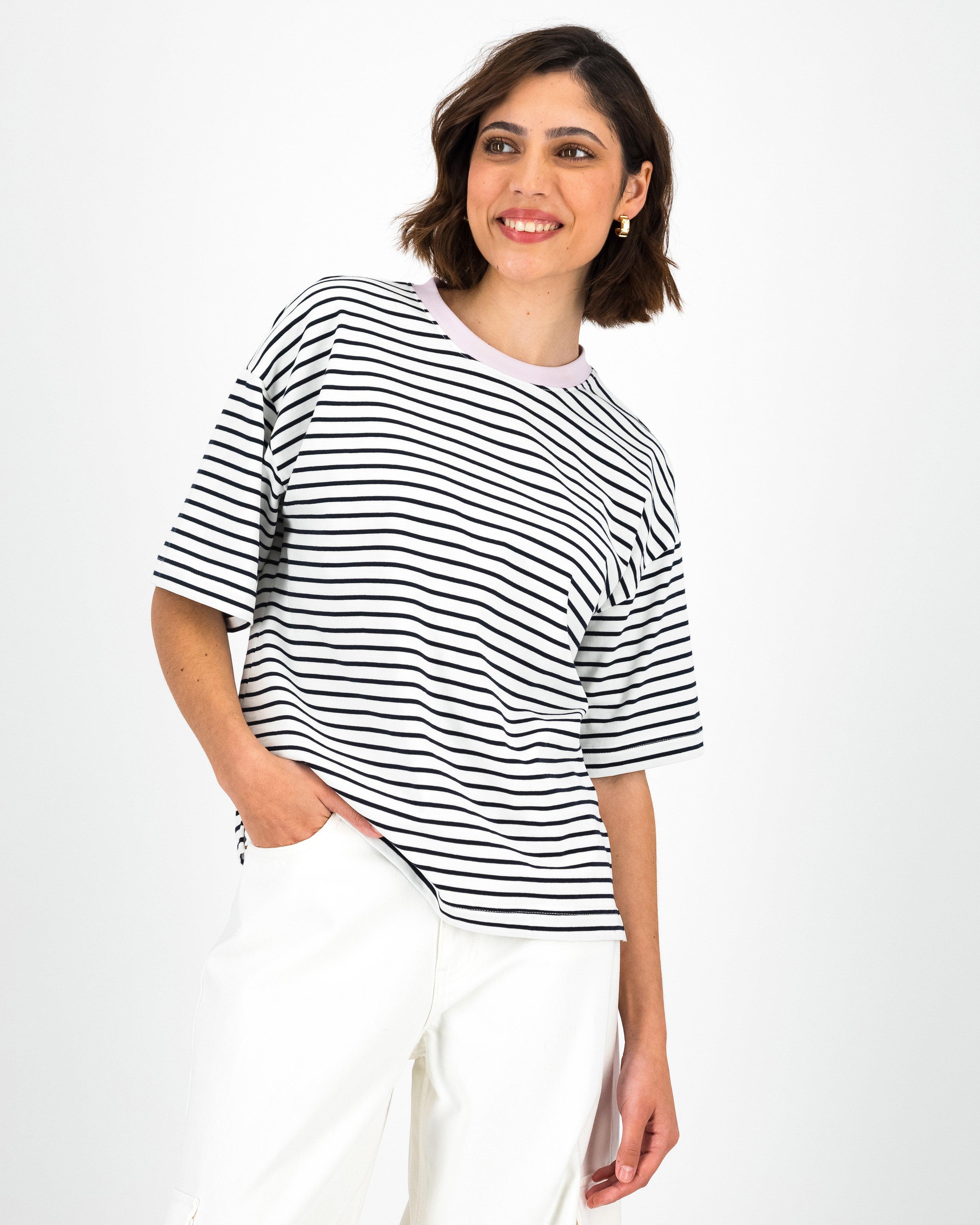 Bekah Stripe T-Shirt Contrast Neck